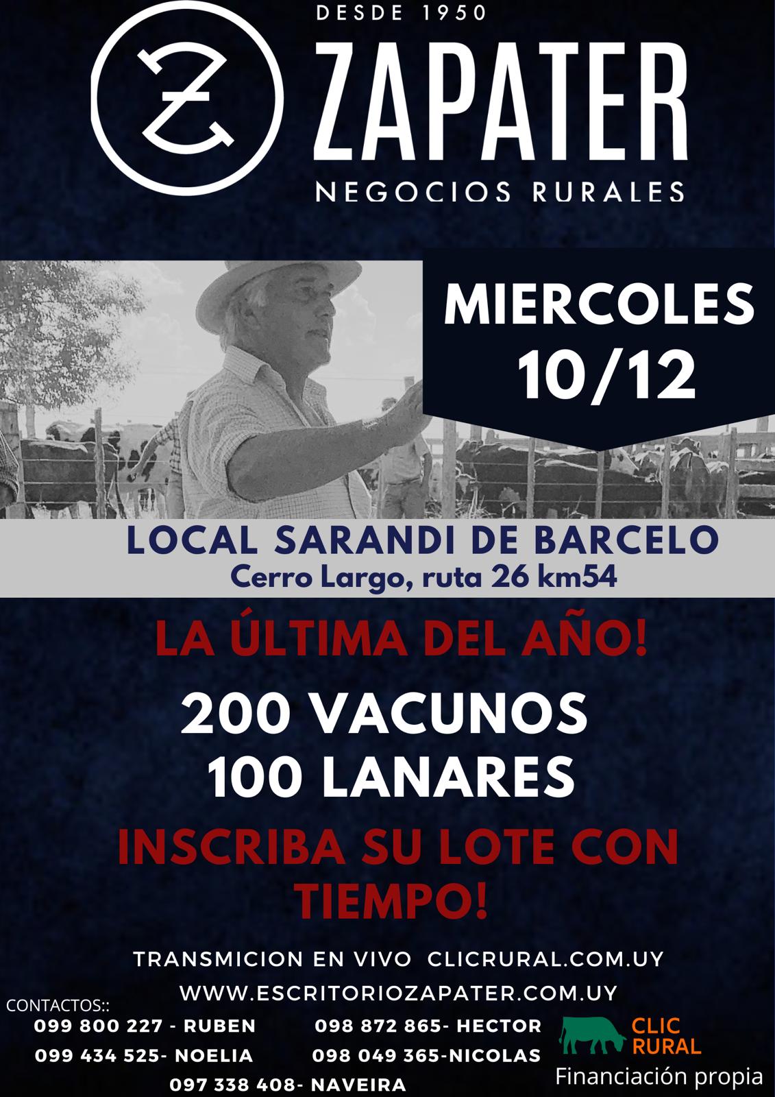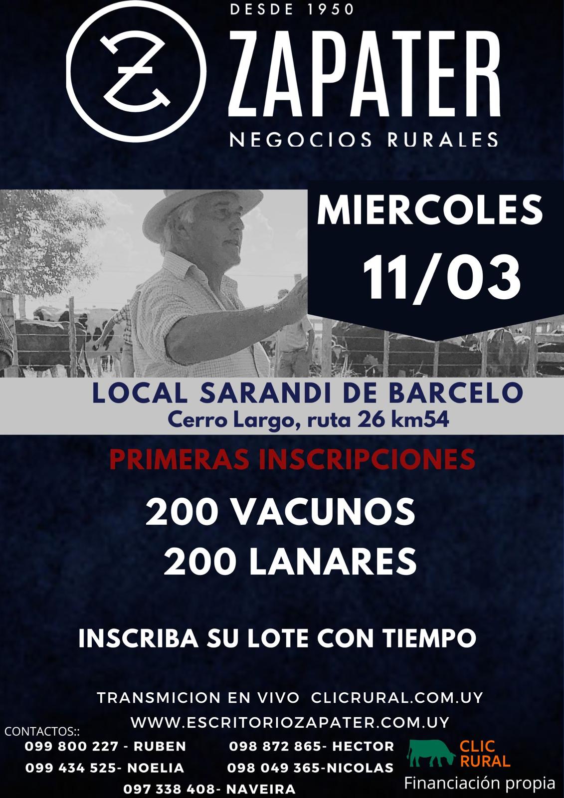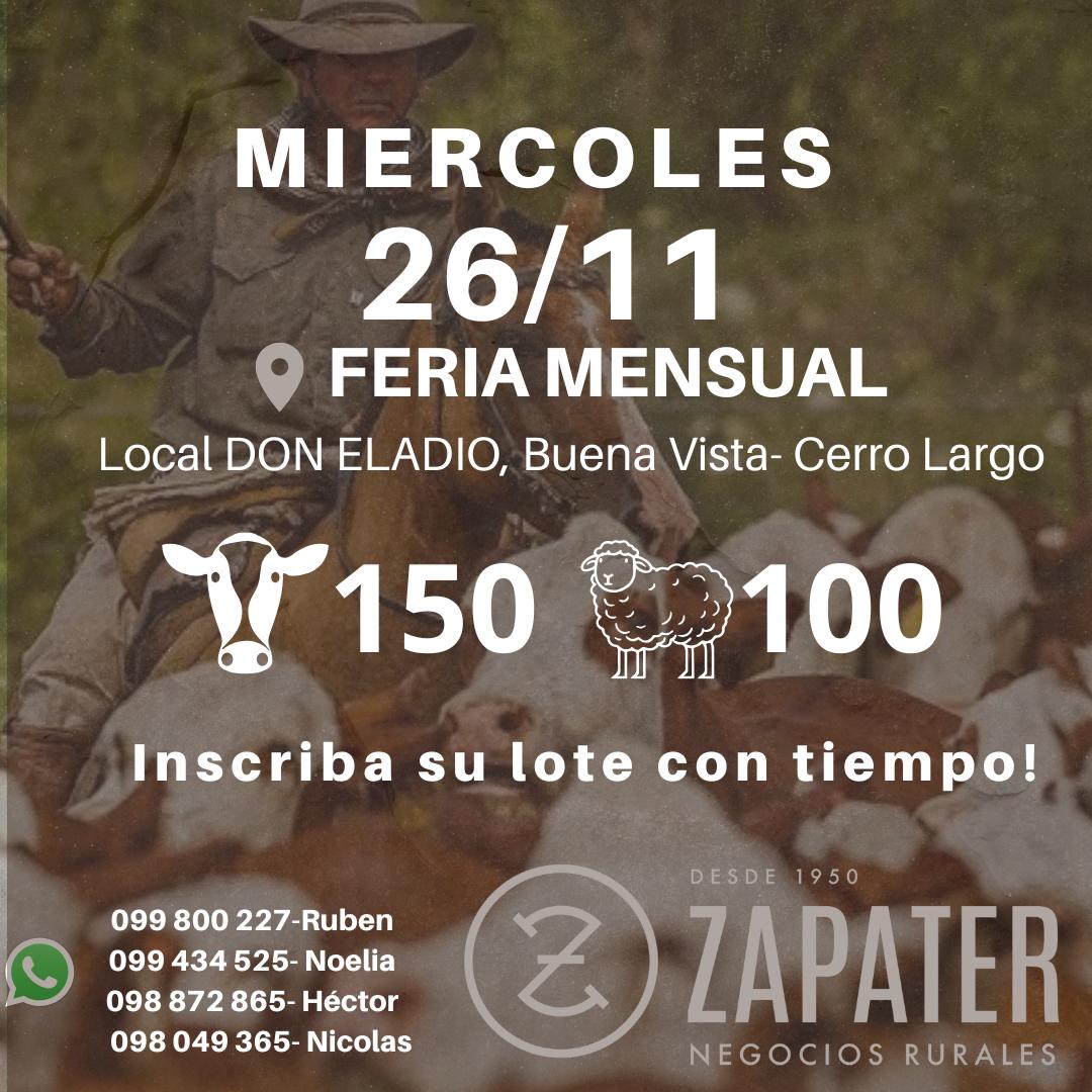 En ESCRITORIO ZAPATER, realizamos remates ferias mensuales en los departametos de Tacuarembó y Cerro Largo. Feria con financiación de BROU